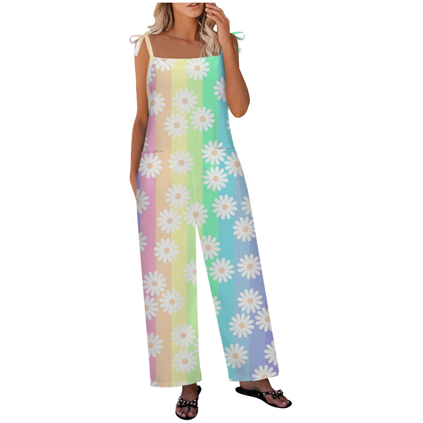 Licupiee Women Boho Printed Casual Overalls Loose Baggy Bib Pants Jumpsuit Bohemian Wide Leg Overall Plus Size Walmart Com